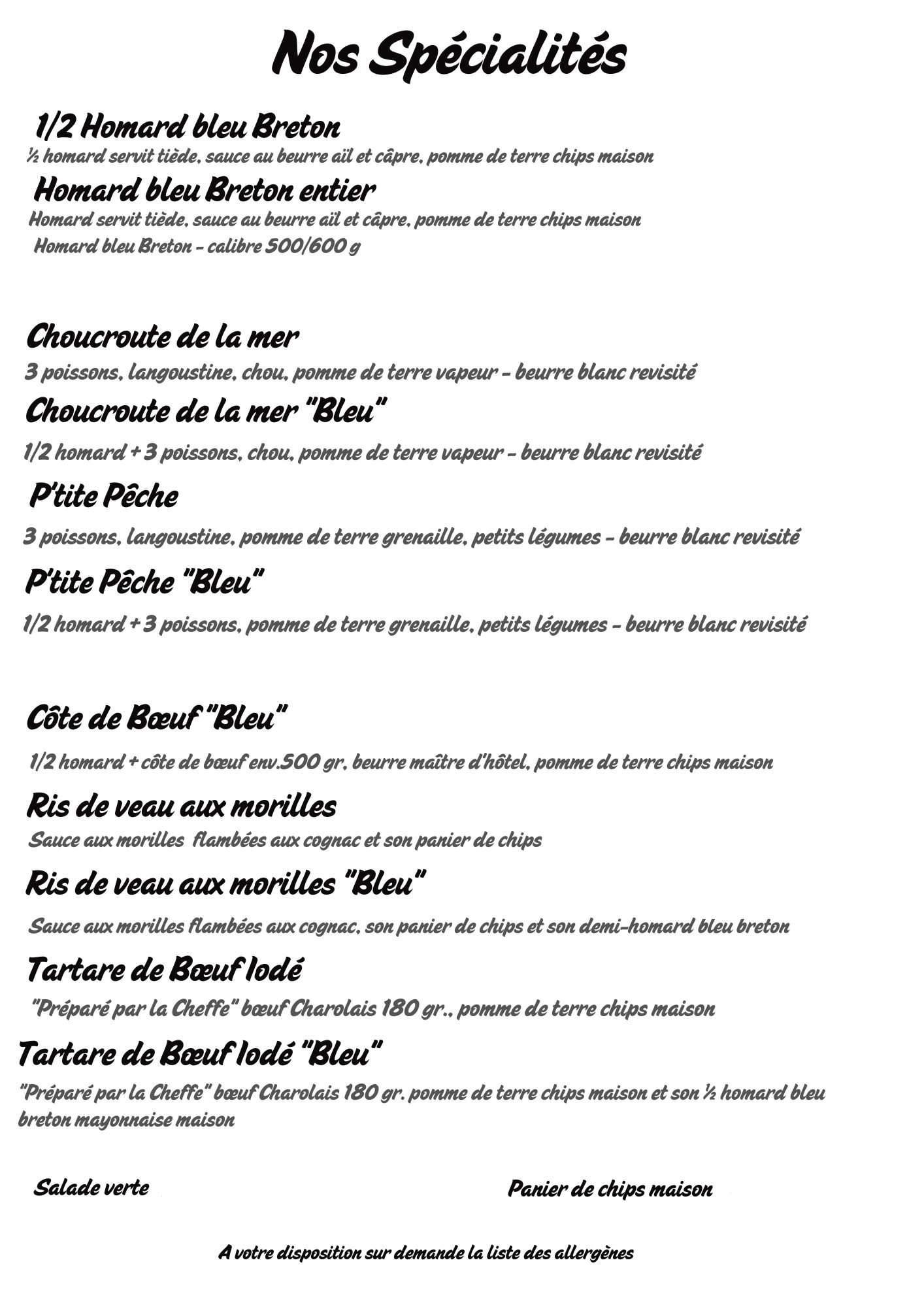 **Découvrez notre homard bleu breton au beurre aillé et câpres, sublimé par notre cheffe talentueuse et accompagné de délicieuses pommes de terre maison en chips croustillantes. Réservez dès maintenant votre homard bleu breton, un plat d'exception qui nécessite une réservation préalable !**